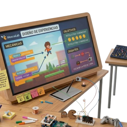 De programar un personaje a liderar un proyecto. En nuestro Digital Lab, los MoscaLabers dejan de crear prototipos básicos para convertirse en arquitectos digitales, capaces de diseñar mundos complejos, balancear la dificultad y publicar experiencias que otros realmente quieran jugar.