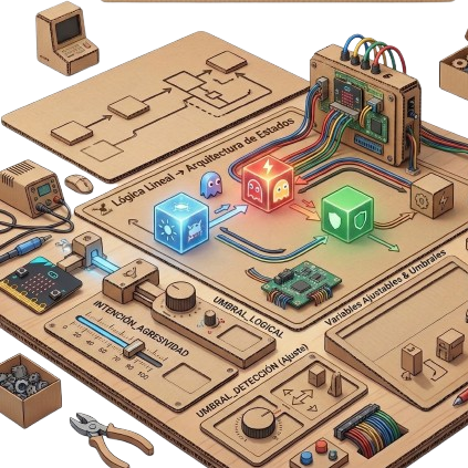 Superamos la lógica lineal para implementar arquitecturas basadas en "estados". Nuestros MoscaLabers aprenden a crear sistemas con variables y umbrales ajustables, asegurando que el código sea eficiente.