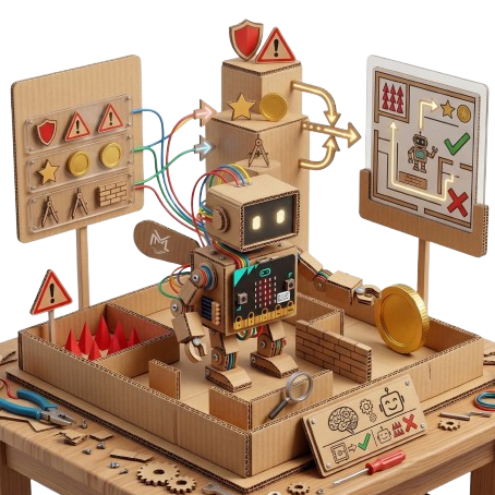 Los MoscaLabers aprenden a darle inteligencia real a sus creaciones. Sus proyectos y creaciones ahora pueden tener "prioridades": aprenden a decidir qué es más importante en cada momento (por ejemplo, avanzar en una misión o detenerse ante un obstáculo inesperado). Es un proceso donde desarrollan un pensamiento lógico muy claro, aprendiendo a organizar sus ideas para que el proyecto responda siempre de la mejor manera.